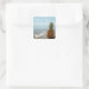 Céus azuis, abacaxi, uma praia arenosa branca com ondas entrando. Um na moda e um adesivo de trendy para o casamento, para dizer obrigado a todos os seus convidados para celebrar o seu casamento na praia. Perfeito para personalizar seus favores de casamento ou papelaria de casamento.