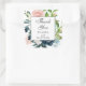 Adesivo Quadrado Favor de Casamento Floral Azul Rosa e Meia-Noite