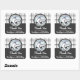 A design apresenta um par de skates de gelo sobre uma crista de floco de neve e um fundo de padrão tartano esbranquiçado. Este elegante design desportivo de inverno serve como um bonito adesivo quadrado moderno e único com texto personalizado.