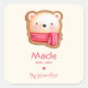 Adesivo Quadrado Feita com amor, Urso Bonito Rosto Vermelho