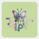 "Borboleta azul adorável com asas vibrantes, sorriso largo e braços abertos, pairando acima do texto colorido 'FELIZ'. Perfeito para designs alegres e espalhando vibrações positivas!"