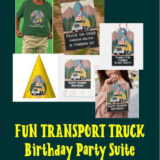 Adesivo Quadrado Feliz Aniversário, Caminhão de Transporte Semi