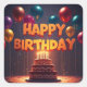 Adesivo Quadrado Feliz Aniversário para Crianças - Bolo Colorido de