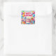 Adesivo Quadrado Feliz Aniversário para Crianças - Bolo Colorido de