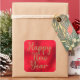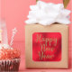 Adesivo Quadrado Feliz ano novo com brilho Dourado no metal vermelh