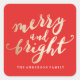 Na moda, Felizes modernas e adesivos de férias brilhantes com texto de folha de ouro falso e fundo vermelho. Use os adesivos festivos para favores de festas de férias, selos de envelopes, livros de raspagem e muito mais!