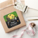 Este adesivo divertido apresenta monstros Frankenstein bonitos ao lado de uma casa assombrada. Ao fundo está uma lua de cheio com morcegos e um céu noturno verde com estrelas. O texto combina fontes decorativas e serif para um aspecto na moda e moderno. Isto é perfeito para uma festa de Halloween.