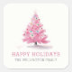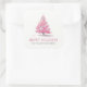 Feliz Natal Árvore de Natal Rosa com Texto Personalizado ou Nome da Família Adesivo Quadrado Moderno
