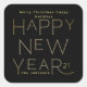 Felizes anos novos Elegantes Personalizados Modernos Bold Black Square Sticker. Esta bela design moderna com a mensagem 'Feliz ano novo' em lindas folhas de papel Faux cores texto para um feriado na moda e adesivo de ano novo. As cores do adesivo e a maioria do texto é totalmente editável.