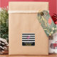 Este adesivo preto e branco pode ser personalizado com o seu texto personalizado, como o seu nome no script dourado faux (não foil) na parte inferior. Um flamingo cor-de-rosa aparece num padrão listrado preto e branco acima do nome. O texto "Este livro pertence a" aparece em texto branco acima do nome.