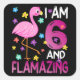 Adesivo Quadrado Flamingoo | I Am 6 Flagrante 6 de Aniversário