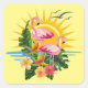 Adesivo Quadrado Flamingos tropicais Sol e flores