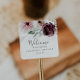 Estes adesivos florais de boas-vindas do romance são perfeitos para um casamento elegante. A moderna design do bico rústico apresenta flores românticas a aquarela em tons macios de burgundy, mauve, rosa-pincel e branco-creme com folhas verdes. Personalize esses adesivos com a localização do seu casamento, nomes e data do casamento. Essas etiquetas são perfeitas para casamentos de destino e bolsas de boas-vindas de hóspedes.