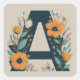 Adesivo Quadrado Floral, Verdadeira Inicial Monograma A