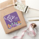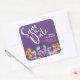 Flores amarelas púrpuras Salve o adesivo Quadrado de data apresenta flores de fotogramas arredondadas feitas com na moda d'água. Atmosfera púrpura e verde para seu tema de casamento criativo e sagrado. Versão púrpura Guarde o adesivo de 'Quadrado de datas'.