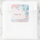 Adesivo Quadrado Flores Azuis bonito em Fundo Rosa Obrigado