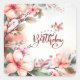Adesivo Quadrado Flores de Magnólia Rosa e Pássaros Feliz Aniversár