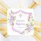 Adesivo Quadrado Flores roxas cor-de-rosa com crista batismo