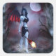 "Fogo da Lua Succubus" Uma cena de fantasia escura apresentando um misterioso, sedutor demoníaco parado debaixo de uma lua vermelha de sangue. Sua pele azul gelada contrasta fortemente com seu cabelo escuro e asas como morcegos, evocando uma beleza assombrosa. Alegada em uma roupa gótica com marcas tribais, ela agarra uma vassoura flamejante, pronta para convocar forças de outro mundo. Árvores torcidas e um céu noturno suave cercam-na, criando uma atmosfera estranha e mágica.