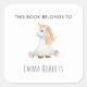 Adesivo Quadrado Folheto do Unicórnio 'Este Livro Pertence' Criança