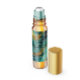 Um rótulo para frascos de perfume com um fundo de mármore dourado falso e azul-verde.