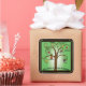 A fruta do adesivo da Espírito, tem árvore e galhos castanhos, com fundo verde e os ramos têm a fruta da bebida espirituosa, e estrutura dourada. Diz no fundo, "Esta Fruta está sempre na estação!" Que bênção seria esta vinheta para presentes, pacotes e muito mais!