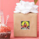 Add a little humor into their holiday season with this cute Christmas sticker with graphics of a funny retro pop art woman sitting in a pile of Christmas gifts, wrapping paper, scissors and bows.