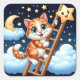 Adesivo Quadrado Gatinho bonito sobe escada até a lua