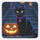 Adesivo Quadrado Gato Negro e Jack-O-Lanterna Halloween
