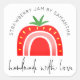 Adesivo Quadrado Geléia de Morango Feita à Mão Com Amor Script Arco