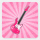 Um violão elétrico rosa-quente está sobre um fundo solar decadente cor-de-rosa mais claro com estrelas. Perfeito para a sua deusa interior!