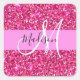 Adesivo Quadrado Glam Girly Hot Pink Glitter Sparkles Nome Monogram
