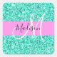 O brilho e a cintilação rosada e turquesa brilham e brilham o nome do monograma branco e o autocolante quadrado inicial. Seu nome personalizado e monograma são escritos em um elegante roteiro escrito à mão com um fundo rosa. Você pode alterar a cor do texto, o estilo e o tamanho da fonte usando a opção personalizar. Um aniversário perfeito ou presente de Natal!