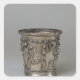 O Goblet de Roman gravou com esqueletos segurando máscaras, do Tesouro Boscoreale localizado no Louvre, Paris, França. O Goblet gravado com esqueletos segurando máscaras, do Tesouro Boscoreale, foi criado por volta do século 1rua.