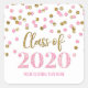 Classe de nome personalizado de adesivos de graduação 2020 com padrão de configuração dourado e cor-de-rosa com texto moderno com estilo escrito.