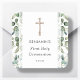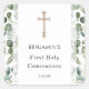 Celebre a Primeira Comunhão do seu filho em estilo com nossos adesivos favoritos personalizáveis com um belo crucifixo de ouro e uma folhagem elegante de eucalipto em um fundo branco nítido. Nossos adesivos têm opções fáceis de personalização, você pode adicionar o nome do seu filho e a data do evento.