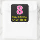 Este alegre design de adesivo quadrado com tema de aniversário apresenta um grande número "8", com uma rosa claro e um padrão de listras cor-de-rosa-escuros. Também apresenta a mensagem "Feliz 8.º aniversário", e um nome editável. O fundo é preto colorido. Tímulos divertidos e personalizados como este podem ser dados como presente de aniversário, ou usados enquanto embrulham presentes, ou talvez usados como decorações de festas de aniversário quando celebram o 8º aniversário de alguém. [~Z0000578]
