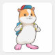 Adesivo Quadrado Hamster como Estudante com Mochila e Boné