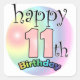 Adesivo Quadrado Happy 11th Birthday (roze)