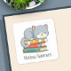 Adesivo Quadrado Happy Cat Book Stack Custom Name Bookplate