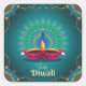 Adesivo Quadrado Happy Diwali Peacock Diya Festival do Azul Claro