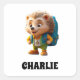 O ouriço bonito e feliz vai para a escola com um saco nas costas (personalizar/personalizar texto)