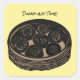 Arte original em xilogravura de bolinhos cozidos em vapor num adesivo que pode ser usado para garrafa de água ou presentes.