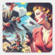 Adesivo Quadrado Ilustração Vintage Pulp Western