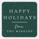 Estrelas brancas brilhantes no verde esmeralda, adesivo personalizado "Feliz Feriados". Projetado para corresponder à nossa Coleção de Inverno Ortográfica.