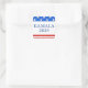 Este na moda e patriótico adesivo da campanha eleitoral de Kamala Harris apresenta um design de bandeira americana. Uma faixa de estrelas brancas é colocada sobre o topo sobre um fundo com estilo de brilho azul. Uma faixa de listras vermelhas e brancas é colocada ao longo da parte inferior, com um padrão de estilo brilhante para as listras vermelhas. A imagem se parece com a bandeira dos EUA. Kamala é impresso no centro, com o ano de eleições de 2024 impresso abaixo em uma fonte azul de brilho equivalente.