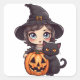 Halloween Kawaii WitGirl e Cat Square Sticker