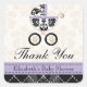 Adesivo Quadrado LAVANDA e Carruagem de bebê preto Obrigado