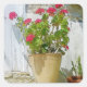 Coloração vermelha do gerânio em flor em frente à parede de pedra em Chipre