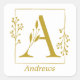 Selo / adesivo bonito apresenta moldura botânica desenhada à mão em ouro com letra botânica A no centro. Personalize com nome